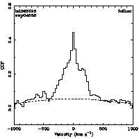 | Cen: -12.0 +/- 5.4 Width: 265.8 +/- 16.5 Peak: 0.234 +/- 0.011 Area: 66.050 +/- 2.992 Cal v: 152 Cor v: 167 |