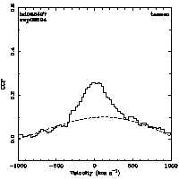 | Cen: -88.8 +/- 10.2 Width: 506.2 +/- 26.4 Peak: 0.075 +/- 0.003 Area: 40.210 +/- 1.698 Cal v: ... Cor v: ... |