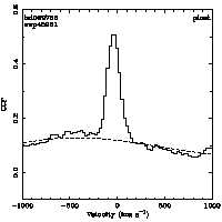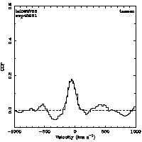 | Cen: -29.4 +/- 3.3 Width: 139.6 +/- 7.7 Peak: 0.264 +/- 0.013 Area: 39.270 +/- 1.894 Cal v: 72 Cor v: 79 |