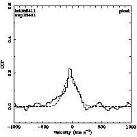 | Cen: -127.4 +/- 16.8 Width: 563.3 +/- 40.0 Peak: 0.061 +/- 0.004 Area: 36.390 +/- 2.229 Cal v: ... Cor v: ... |