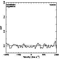| Cen: -85.1 +/- 14.6 Width: 41.0 +/- 28.5 Peak: 0.039 +/- 0.021 Area: 1.709 +/- 0.912 Cal v: ... Cor v: ... |