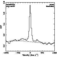 | Cen: -9.4 +/- 3.4 Width: 79.9 +/- 8.5 Peak: 0.162 +/- 0.014 Area: 13.800 +/- 1.225 Cal v: 35 Cor v: 38