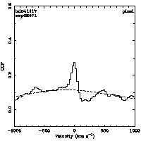 | Cen: -106.0 +/- 29.0 Width: 516.5 +/- 82.2 Peak: 0.047 +/- 0.006 Area: 25.650 +/- 3.151 Cal v: ... Cor v: ... |