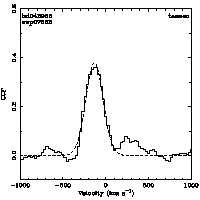 | Cen: -70.9 +/- 17.0 Width: 527.4 +/- 55.8 Peak: 0.053 +/- 0.004 Area: 29.660 +/- 2.225 Cal v: ... Cor v: ... |