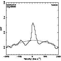 | Cen: -4.3 +/- 48.8 Width: 337.5 +/- 128.5 Peak: 0.113 +/- 0.023 Area: 40.690 +/- 8.155 Cal v: 198 Cor v: 217 |
