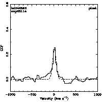 | Cen: -188.5 +/- 30.9 Width: 554.0 +/- 59.2 Peak: 0.039 +/- 0.004 Area: 23.170 +/- 2.490 Cal v: ... Cor v: ... |