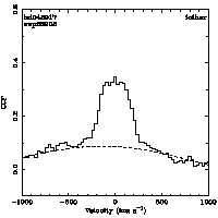 | Cen: -104.1 +/- 12.3 Width: 444.3 +/- 30.8 Peak: 0.057 +/- 0.003 Area: 26.730 +/- 1.499 Cal v: ... Cor v: ... |