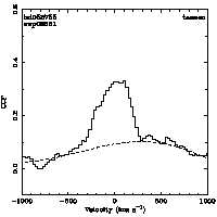 | Cen: -139.7 +/- 12.7 Width: 630.7 +/- 26.7 Peak: 0.058 +/- 0.002 Area: 39.200 +/- 1.564 Cal v: ... Cor v: ... |