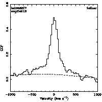 | Cen: -9.0 +/- 3.8 Width: 146.4 +/- 8.2 Peak: 0.226 +/- 0.012 Area: 35.250 +/- 1.814 Cal v: 90 Cor v: 98