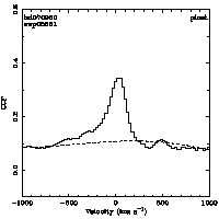 | Cen: -185.2 +/- 16.6 Width: 549.0 +/- 34.1 Peak: 0.066 +/- 0.004 Area: 38.740 +/- 2.301 Cal v: ... Cor v: ... |