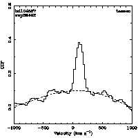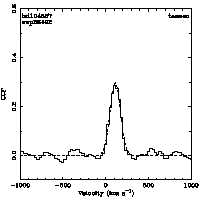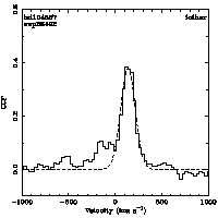 | Cen: -33.7 +/- 14.5 Width: 564.2 +/- 30.1 Peak: 0.077 +/- 0.004 Area: 46.000 +/- 2.325 Cal v: ... Cor v: ... |