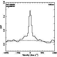 | Cen: -15.0 +/- 2.3 Width: 130.5 +/- 5.8 Peak: 0.334 +/- 0.012 Area: 46.350 +/- 1.704 Cal v: 78 Cor v: 85