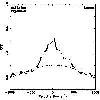 | Cen: -30.1 +/- 11.9 Width: 492.2 +/- 37.3 Peak: 0.069 +/- 0.004 Area: 35.960 +/- 1.998 Cal v: ... Cor v: ... |