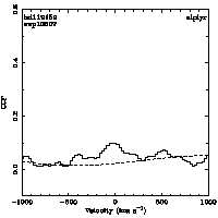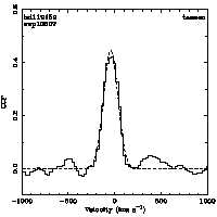 | Cen: -55.3 +/- 21.6 Width: 525.0 +/- 66.5 Peak: 0.059 +/- 0.005 Area: 32.790 +/- 3.076 Cal v: ... Cor v: ... |