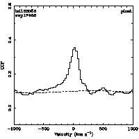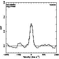 | Cen: -131.1 +/- 22.4 Width: 563.4 +/- 42.5 Peak: 0.056 +/- 0.004 Area: 33.720 +/- 2.503 Cal v: ... Cor v: ... |