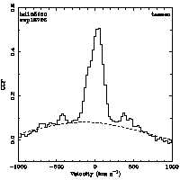 | Cen: -32.0 +/- 10.2 Width: 362.8 +/- 26.3 Peak: 0.148 +/- 0.008 Area: 57.310 +/- 3.164 Cal v: 223 Cor v: 194