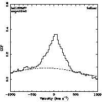 | Cen: -56.4 +/- 12.5 Width: 480.1 +/- 28.6 Peak: 0.065 +/- 0.003 Area: 33.000 +/- 1.689 Cal v: ... Cor v: ... |