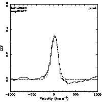 | Cen: -1.2 +/- 5.4 Width: 144.8 +/- 11.1 Peak: 0.154 +/- 0.011 Area: 23.760 +/- 1.736 Cal v: 89 Cor v: 97