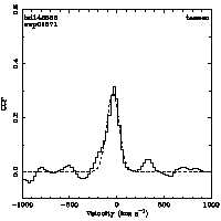 | Cen: -35.8 +/- 12.3 Width: 100.8 +/- 27.3 Peak: 0.044 +/- 0.011 Area: 4.728 +/- 1.147 Cal v: ... Cor v: ... |