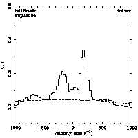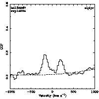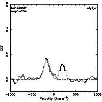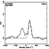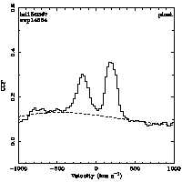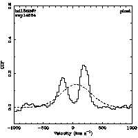 | Cen: -164.7 +/- 8.3 Width: 172.0 +/- 23.6 Peak: 0.155 +/- 0.016 Area: 28.440 +/- 2.948 Cal v: 95 Cor v: 104 |