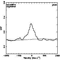 | Cen: -143.2 +/- 21.1 Width: 527.3 +/- 42.8 Peak: 0.052 +/- 0.004 Area: 29.440 +/- 2.230 Cal v: ... Cor v: ... |