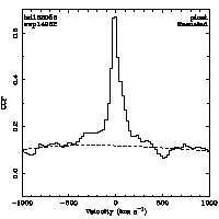 | Cen: -3.0 +/- 2.2 Width: 141.0 +/- 6.6 Peak: 0.498 +/- 0.017 Area: 74.810 +/- 2.596 Cal v: 81 Cor v: 77