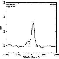 | Cen: 39.7 +/- 5.1 Width: 204.8 +/- 15.6 Peak: 0.220 +/- 0.012 Area: 47.910 +/- 2.655 Cal v: 138 Cor v: 150