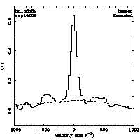 | Cen: -76.1 +/- 25.5 Width: 563.5 +/- 59.7 Peak: 0.046 +/- 0.004 Area: 27.840 +/- 2.530 Cal v: ... Cor v: ... |