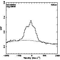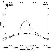 | Cen: -147.4 +/- 21.1 Width: 675.0 +/- 49.0 Peak: 0.046 +/- 0.003 Area: 32.940 +/- 2.058 Cal v: ... Cor v: ... |