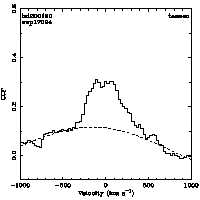 | Cen: -25.0 +/- 13.4 Width: 466.8 +/- 39.6 Peak: 0.059 +/- 0.004 Area: 29.360 +/- 1.816 Cal v: ... Cor v: ... |