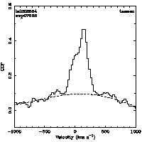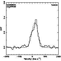 | Cen: -53.1 +/- 16.4 Width: 647.4 +/- 38.1 Peak: 0.059 +/- 0.003 Area: 40.750 +/- 2.088 Cal v: ... Cor v: ... |